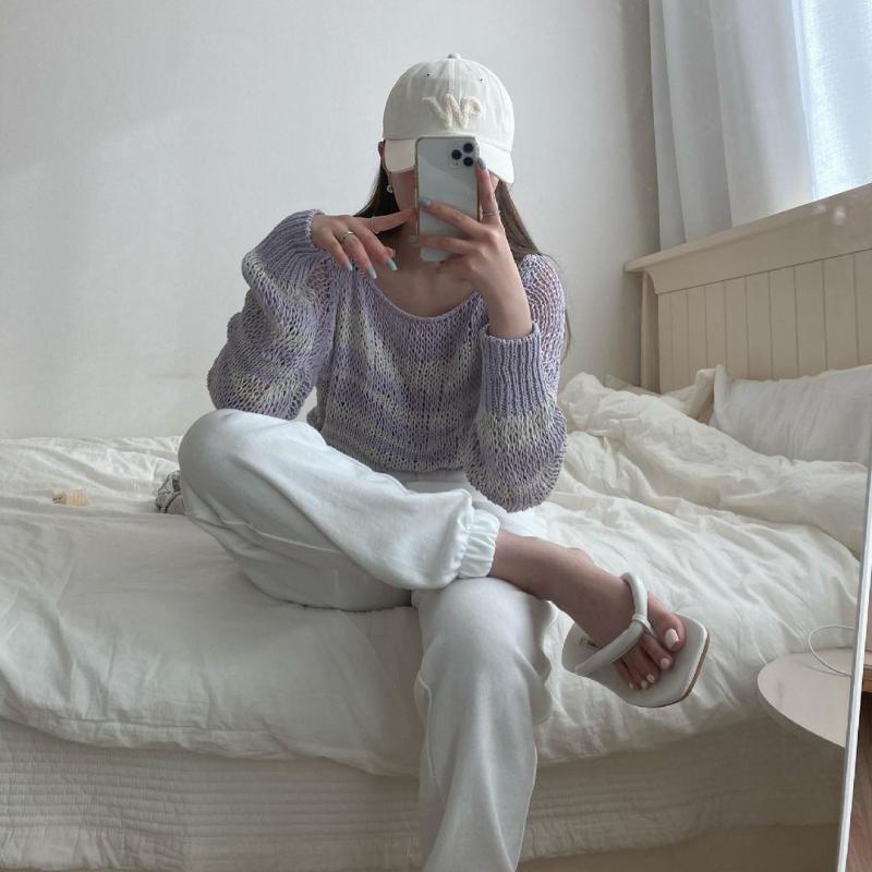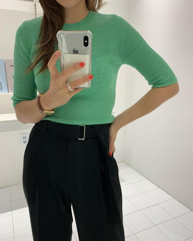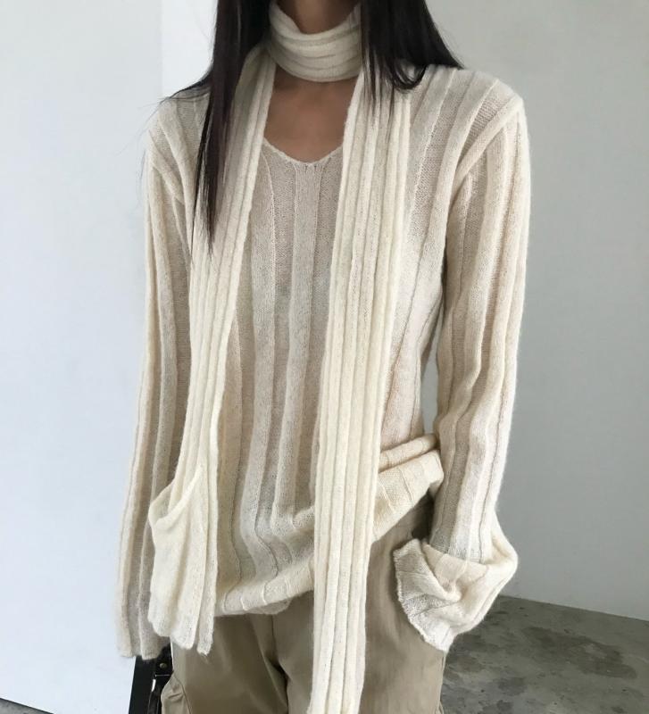 시원한 터치감의 린넨 골지7부 니트예요