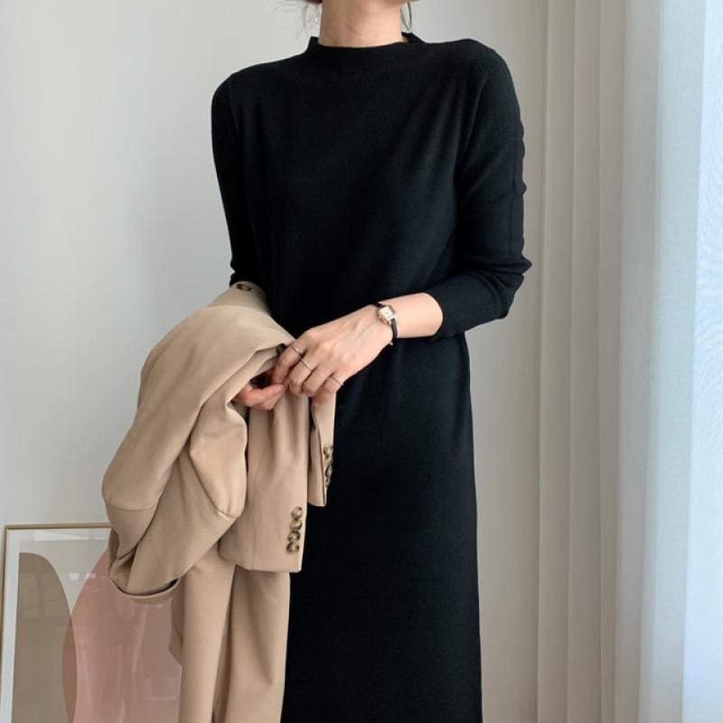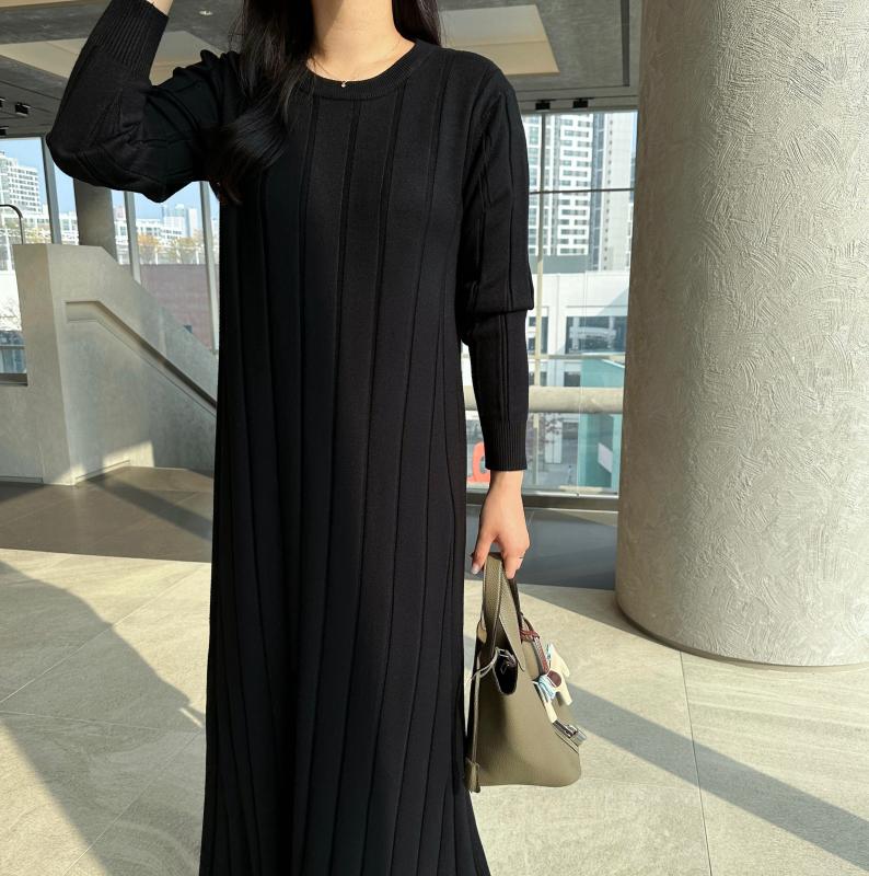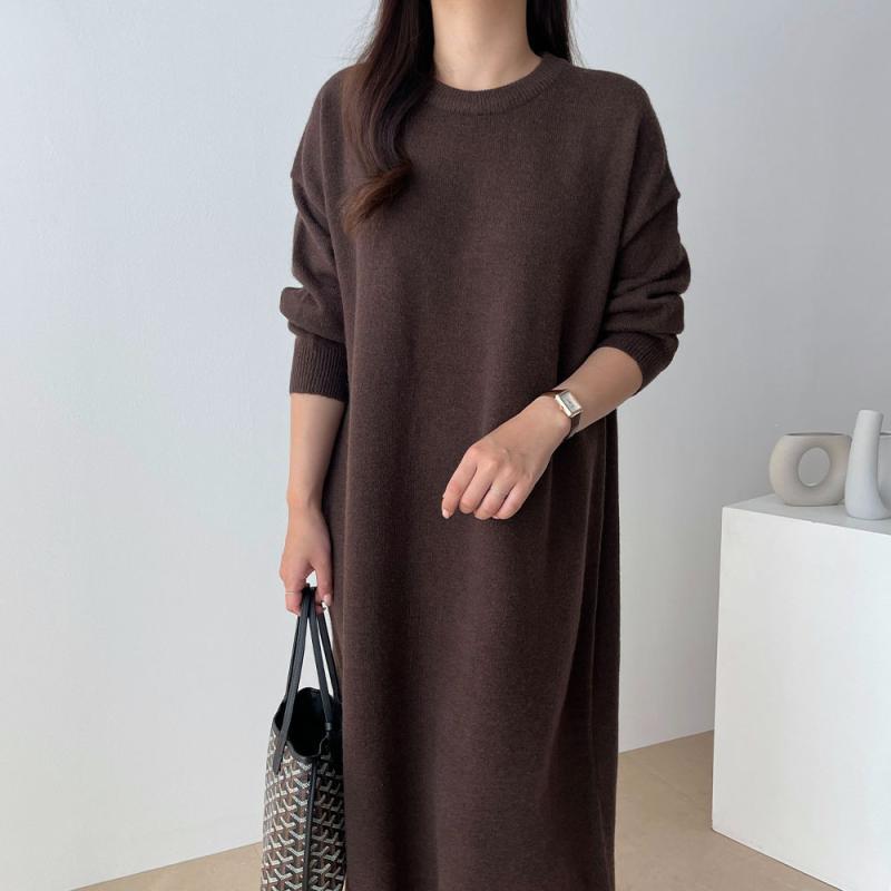 겨울 기본 이너 원피스로 입기 좋은 캐시미어 라운드넥 루즈핏 롱 원피스 4color🩶