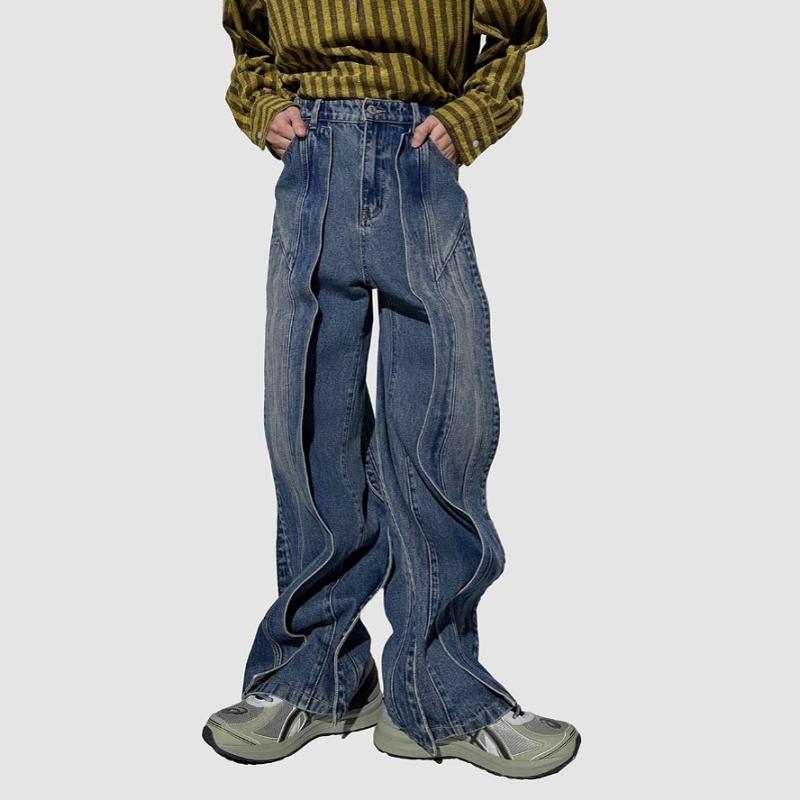 🫧 유니크 스트릿 플리츠 패치워크 와이드청바지