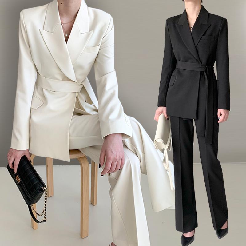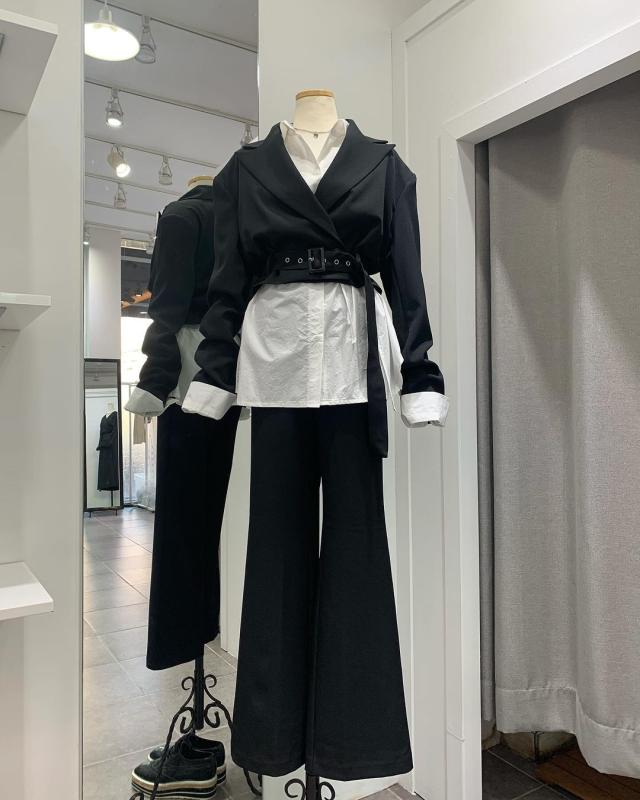 🏝️ 셋업 세트 수트 크롭자켓세트 자켓셋업 스트랩셔츠 허리끈셔츠 🏔️크롭자켓+슬림부츠컷팬츠 크림 블랙 , 스트랩셔츠 화이트 카키 블랙🏯