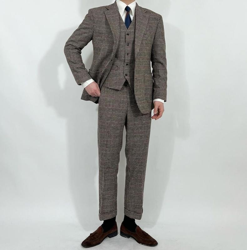 -하운드 투스 체크 패턴으로 제작된 클래식 수트