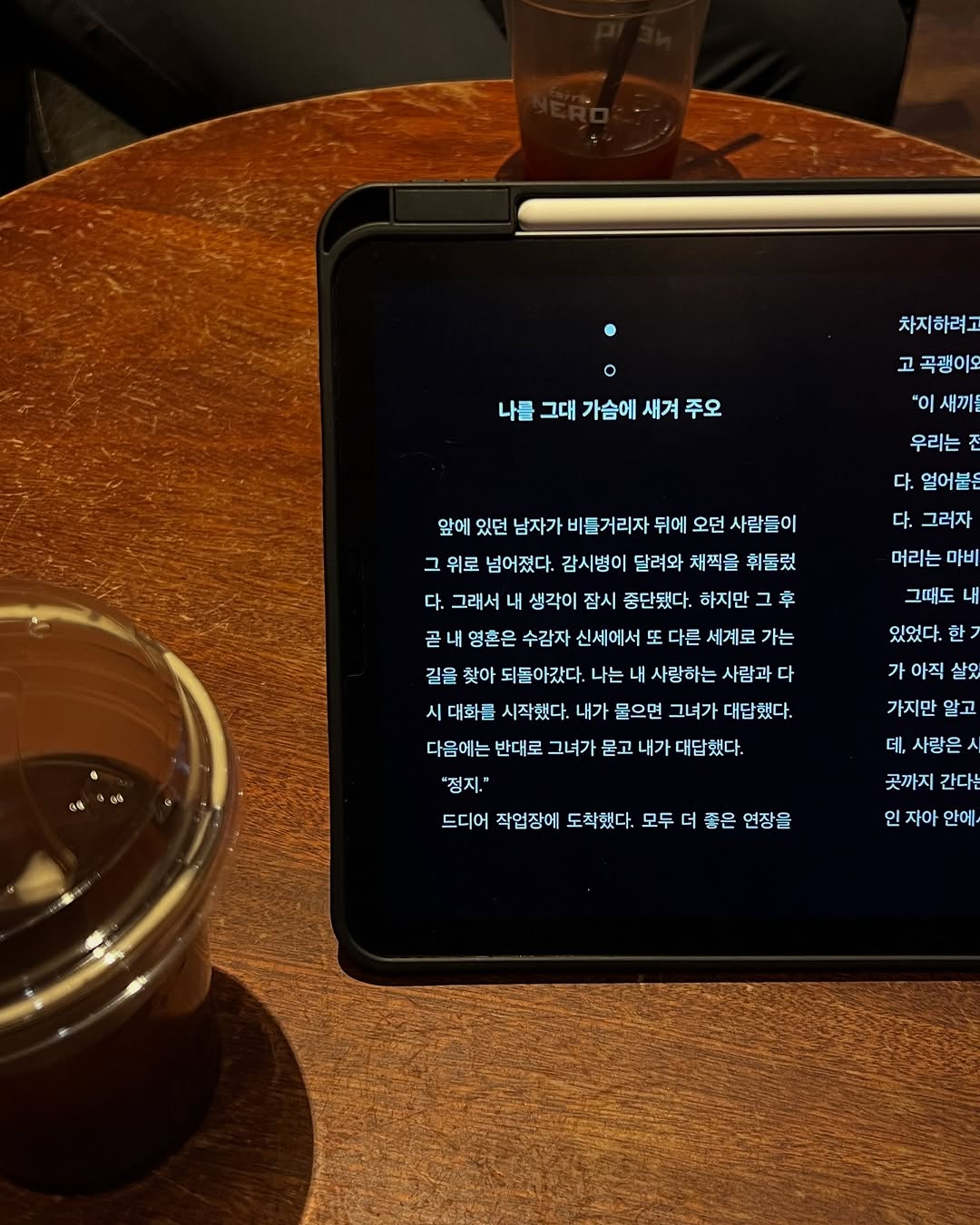 그 담담한 문장들이 후욱 하고 가슴을 파고들었죠.