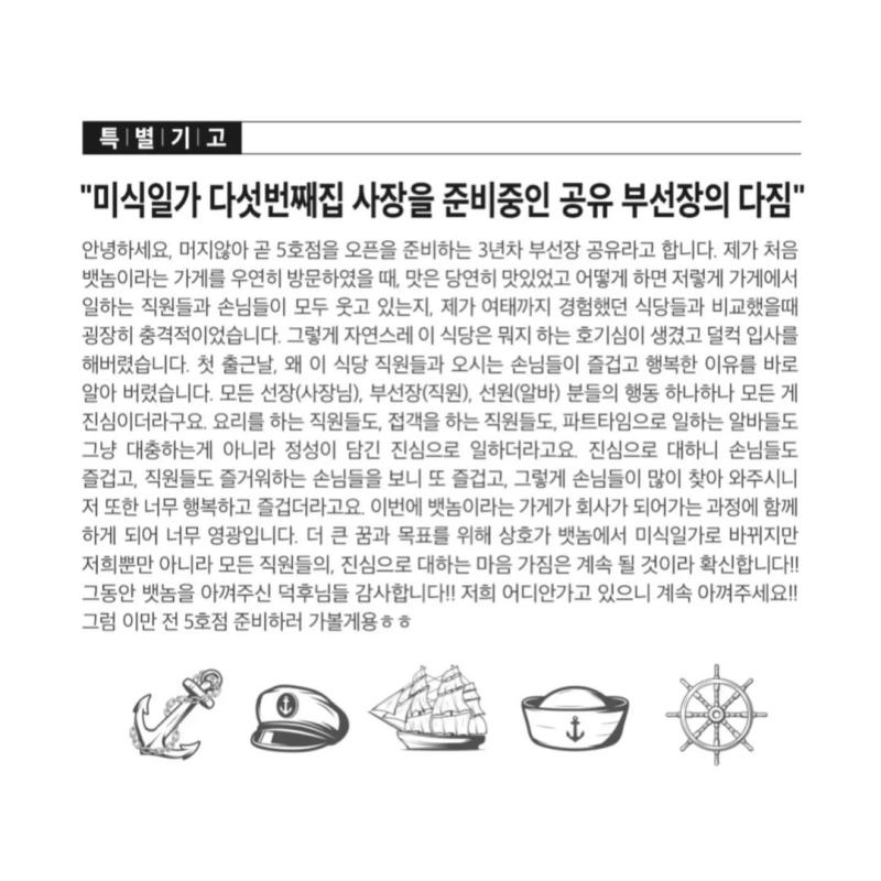 뱃놈 덕후님들 덕분에 하루 한팀도 손님이 없던 뱃놈이 어느덧 5호점 오픈을 앞두고 있습니다.