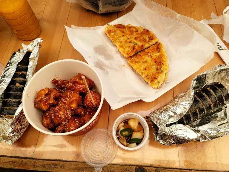 김밥과 시장 음식 푸짐하게 포장해서 시장 근처 삼덕 공원길 벚꽃 밑에서 즐겨보시길!🌸