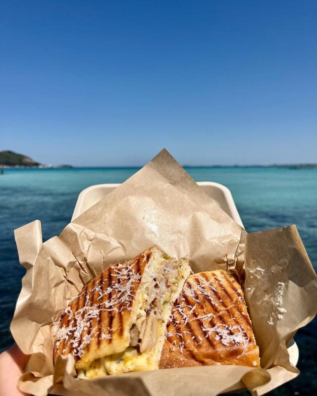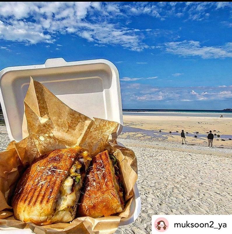 Wow, the view did one but the panini did 99❤️ Looking for a light breakfast to start the drive, we found this small place that sells sandwiches right in front of the beach🏝️ The mushroom panini was absolutely amazing. You MUST drop by when you're visiting Jeju!!