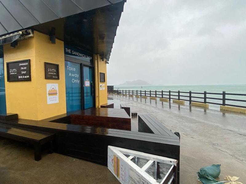 아침에 쓰러진 나무와 입간판을 정리하는데 생각보다 많은 비와 걷기 힘들 정도의 바람이 부네요. 바닷가 바로 앞이라 이런날은 바람이 상상 그 이상이에요. 오늘은 임시휴무하고 내일은 정상 오픈할께요. 이용 예정이셨던 분들은 참고 부탁드려요. 내일 맛있는 샌드위치로 만나요!