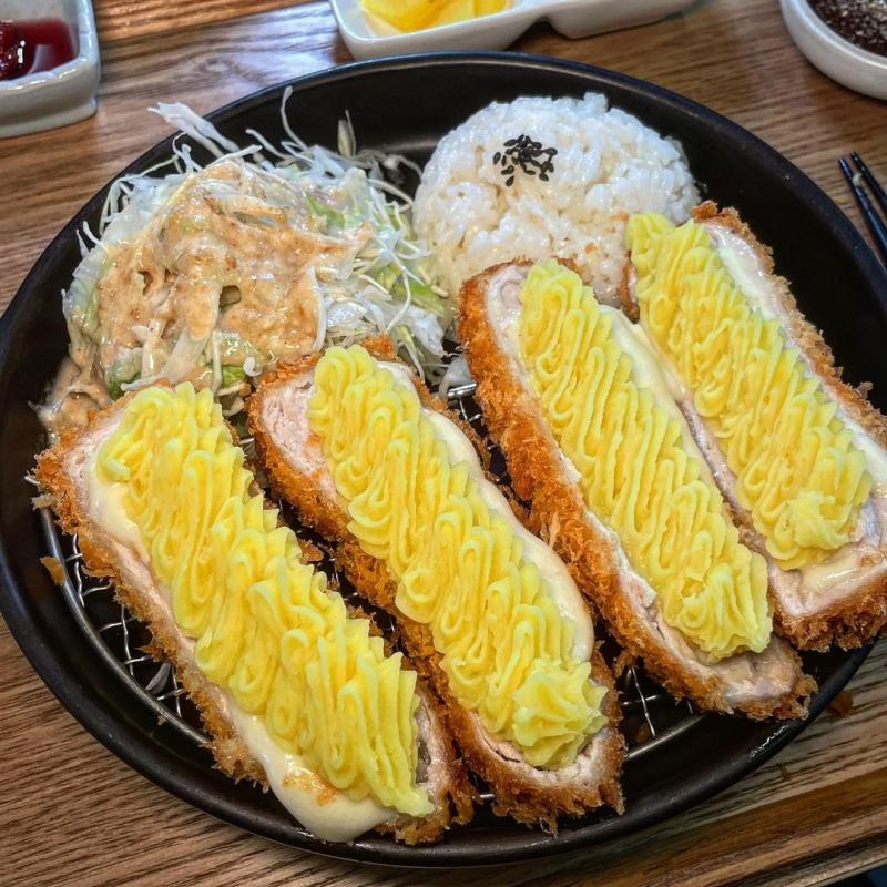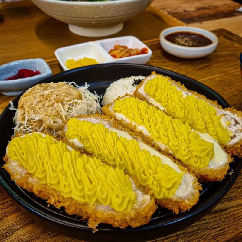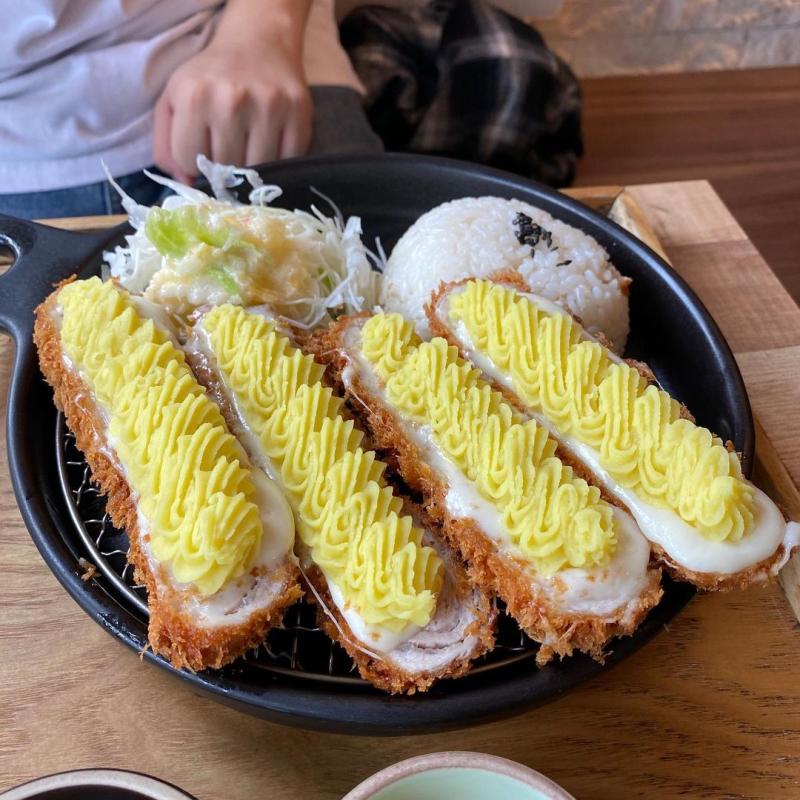 일반 치즈카츠에 고구마 무스가 얹어진 카츠다.