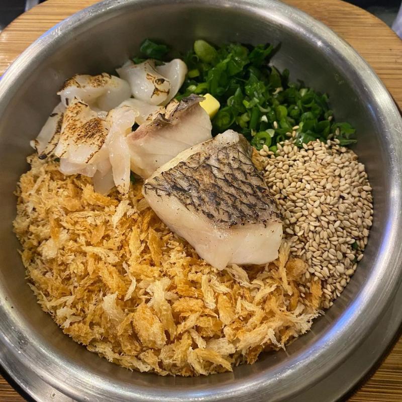 아주 고소한 생선살에 비벼먹는 밥이 핵심.