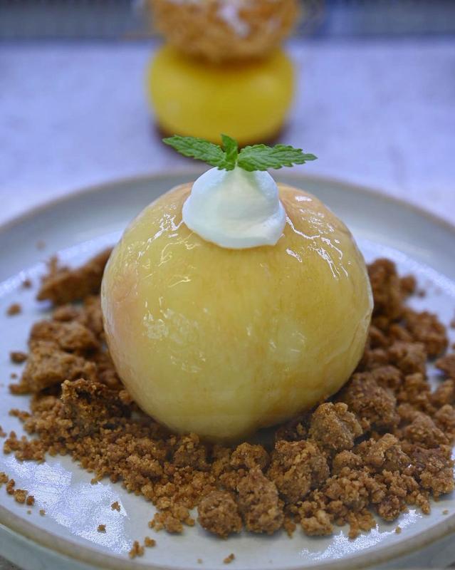 피치사워는 복숭아와 어울리는 사워크림이 들어간 크림과 크럼블 그리고 꿀의 조합입니다.