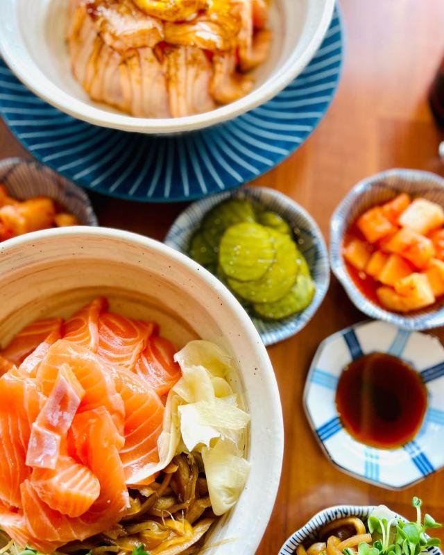 직원분이 엄청 친절하세요!! 연어를 쯔유 소스에 앞뒤로 찍어서 밥 위에 올리고, 생강, 양파절임, 무순, 김 중에 원하는 토핑들은 얹어 먹으면 된다고 자세히 설명해주셨어요!!