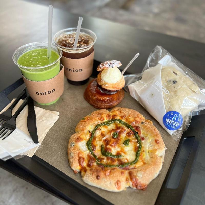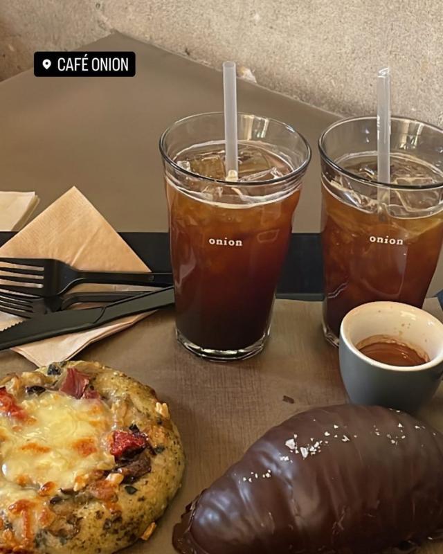 어니언 카페를 가보았어용 역시나 핫하드라구여??! 빵도 되게 다양하고 맛있었어용 아아는 샷 하나 빼달라했더니 따로 주드라구여 센스👍