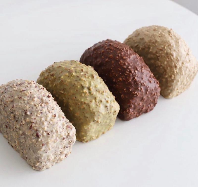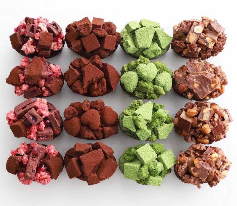 네 가지의 초콜릿퍼지케이크와 파베초콜릿.