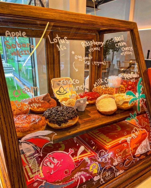 맛있는 도넛으로 입소문난 분당 카페. 주말에 가니 자리가 없다.