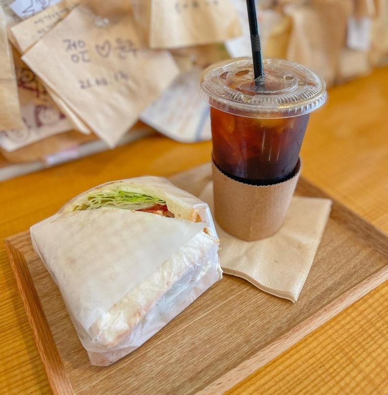 먹어보고 싶은 메뉴가 너무너무 많아서 힘들었는데, 고민 끝 선택한 메뉴는 허니디종치즈치킨. 외국인 손님들이 특히 좋아하는 메뉴라 들었는데, 쫄깃한 빵의 식감, 싱싱하게 씹히는 채소의 식감, 은은한 단짠이 느껴지는 치즈 슈레드까지 흠잡을데 없고 기분 좋아지는 맛의 샌드위치였다.
