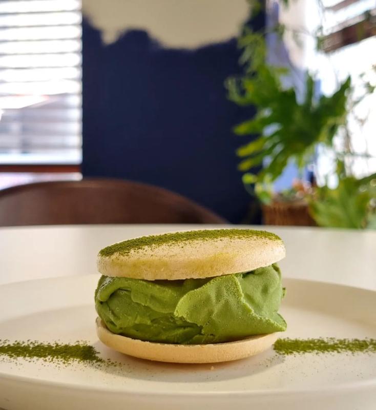 진한 진짜 말차 맛과 향이 잘 느껴지고 모나카 피의 바삭한 식감과 맛이 잘 어우러지는 디저트입니다👍
