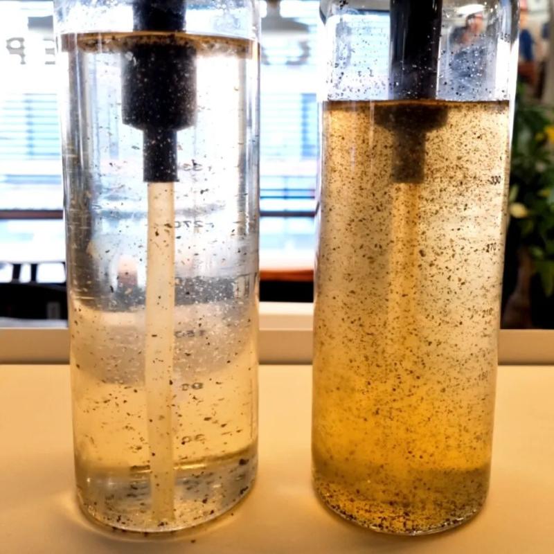 왼쪽이 기존에 사용하는 3주 숙성 바닐라빈 시럽입니다:) 육안상 확연한 차이가 있습니다.