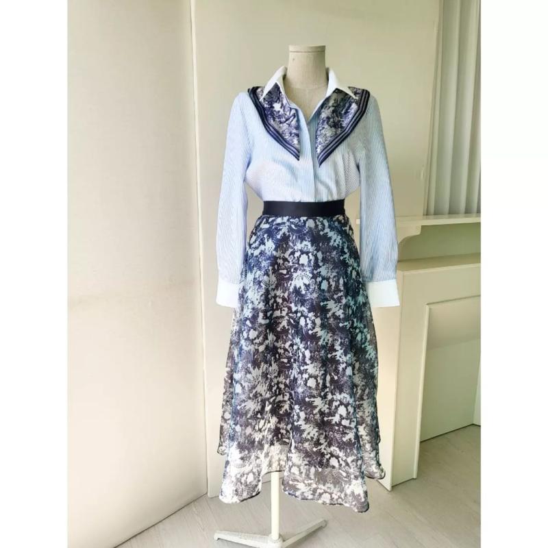 풍성한 스커트라인 덕분에 우아해보이기까지 :) 결혼식 하객룩, 상견례룩 등 중요한 자리에서 입기 너무 좋을 것 같은 원피스