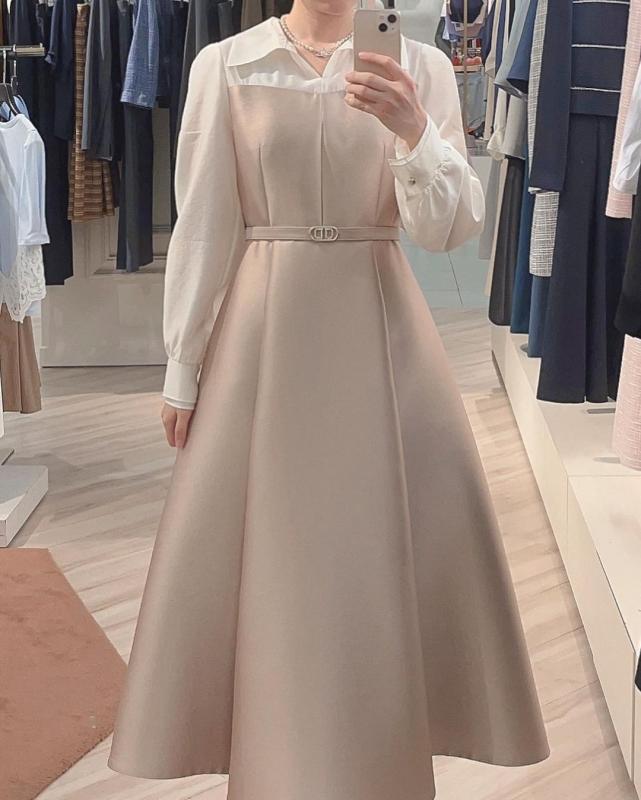 은은한 광택감과 화사하고 차분한 베이지의 조화가 너무 예뻤던 원피스!